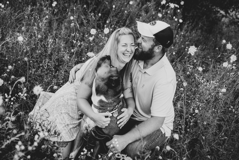 I love when people take the time to schedule pics "just because". These two have been together for quite a few years now and told me that they just wanted some nice photos together, which is so common. This is a perfect enough reason for photos! Plus they wanted photos with their fur baby who was as cute as can be! Such a big baby and an awesome listener. I've known Nate since he was just a few years old. Him and his little brother were my first babysitting job and my "boys". I loved caring for these guys and have oodles and oodles of hours logged watching them play and grow. It's so weird to fast forward the clock to see a young (and very bearded) man, living his own life now as an adult. Talk about feeling old. And this chicky and dogger on his side are golden. Amanda and Nate compliment each other so well and are truly best buddies. Their laughter and silliness during our time together is just contagious and you can tell these two have an awesome relationship. So awesome that I'm sure many people will be zooming in to look for a ring in these pics (haha sorry Nate, no pressure)! A shoutout to kiddos finding someone that fits so perfectly into their life and family. I love watching you guys grow together and adventure together too. Thank you for letting me capture your love and your pup too!